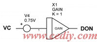 对应(3)式的等效模型见(图5),X1是增益为1的增益宏模型,可从ICAP4的模型库里直接调用。断开占空比DOFF的产生比较复杂,分为下面两种情况: